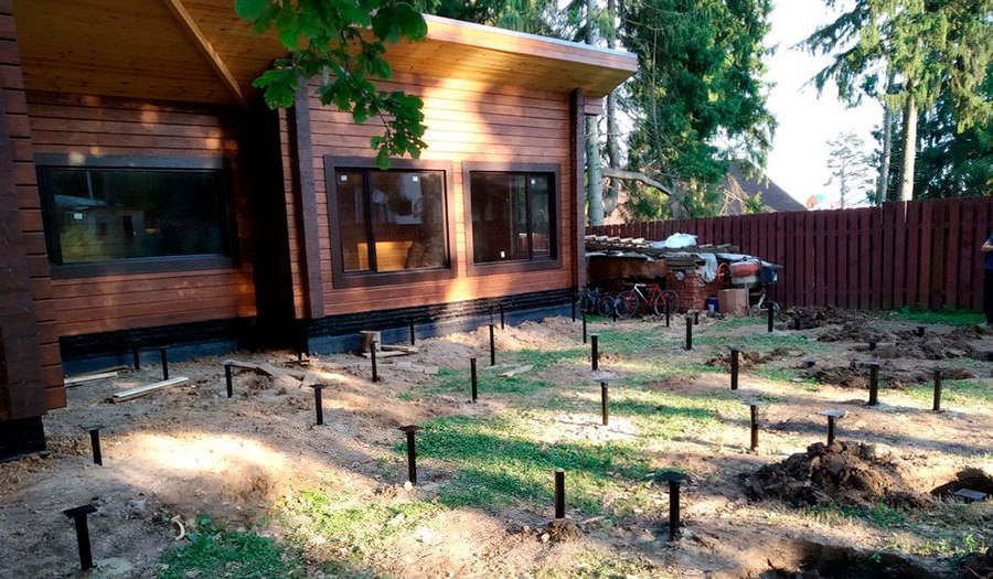 Монтаж вкручивающихся свай для веранды: